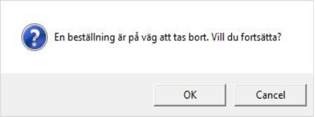 Om man trycker OK kommer beställningen tas bort och kan inte återställas.