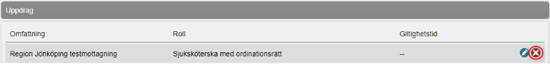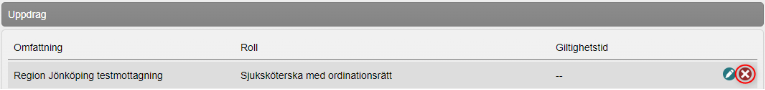 För att ta bort behörighet: Klicka på kryssikonen vid den behörighet du vill ta bort.