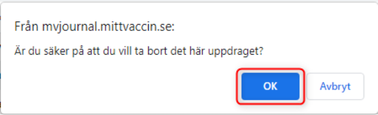 En dialogruta kommer upp, ”Är du säker på att du vill ta bort det här uppdraget?”. Klicka på OK.