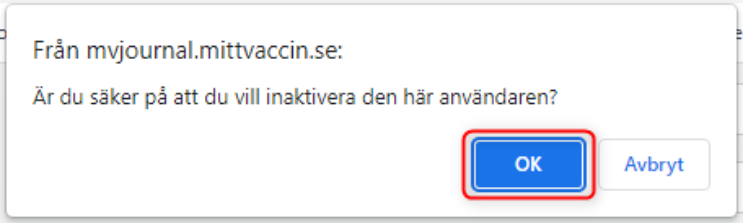 10. En dialogruta kommer upp, ”Är du säker på att du vill inaktivera den här användaren?”. Klicka på OK.