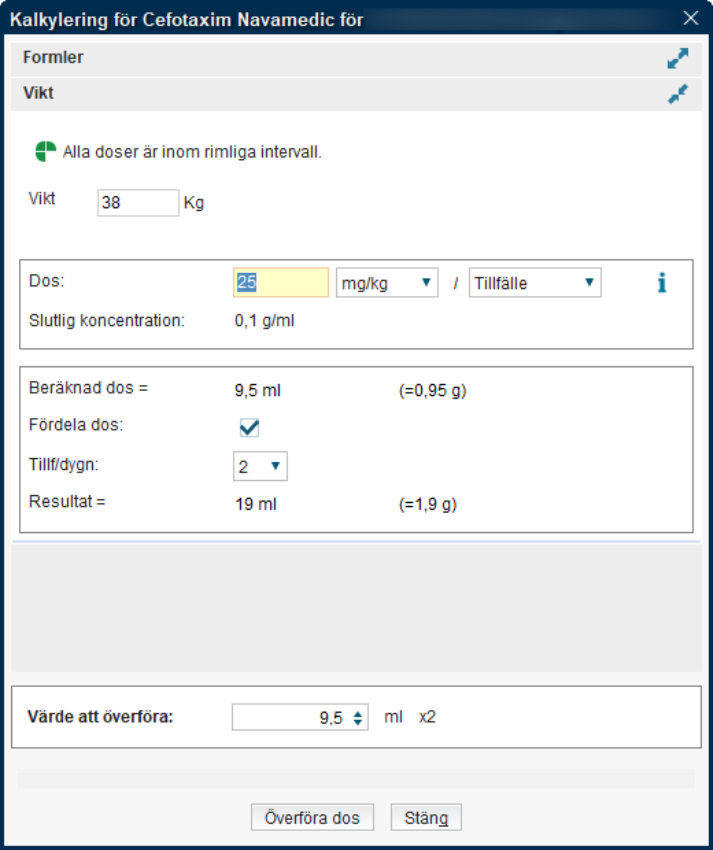 - Ange Vikt och önskad Dos.