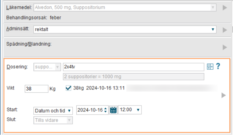 - Ange Dosering och Vikt.