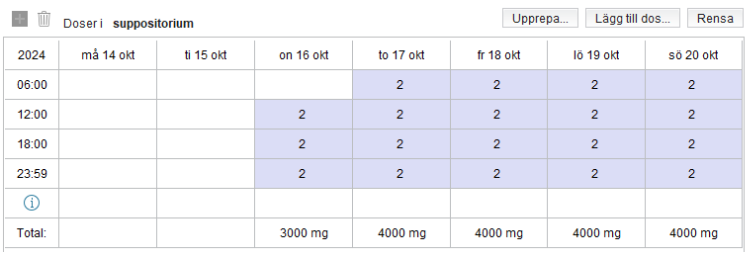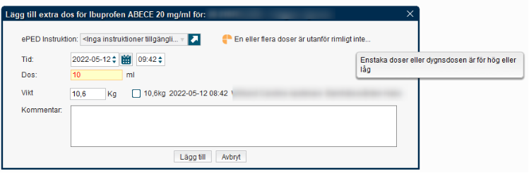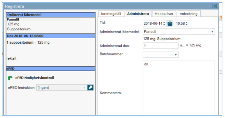 - Rimlighetskontroll utförs för den enskilda dosen och den sammanlagda dygnsdosen av givna och planerade doser, inklusive det extra utdelningstillfället.