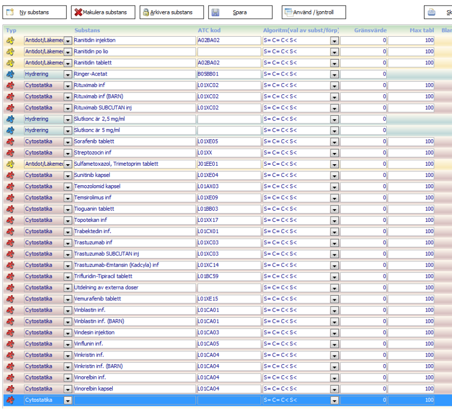 7. Klicka på pilen i substanskolumnen på den nya raden. Hämta upp den nya substansen.