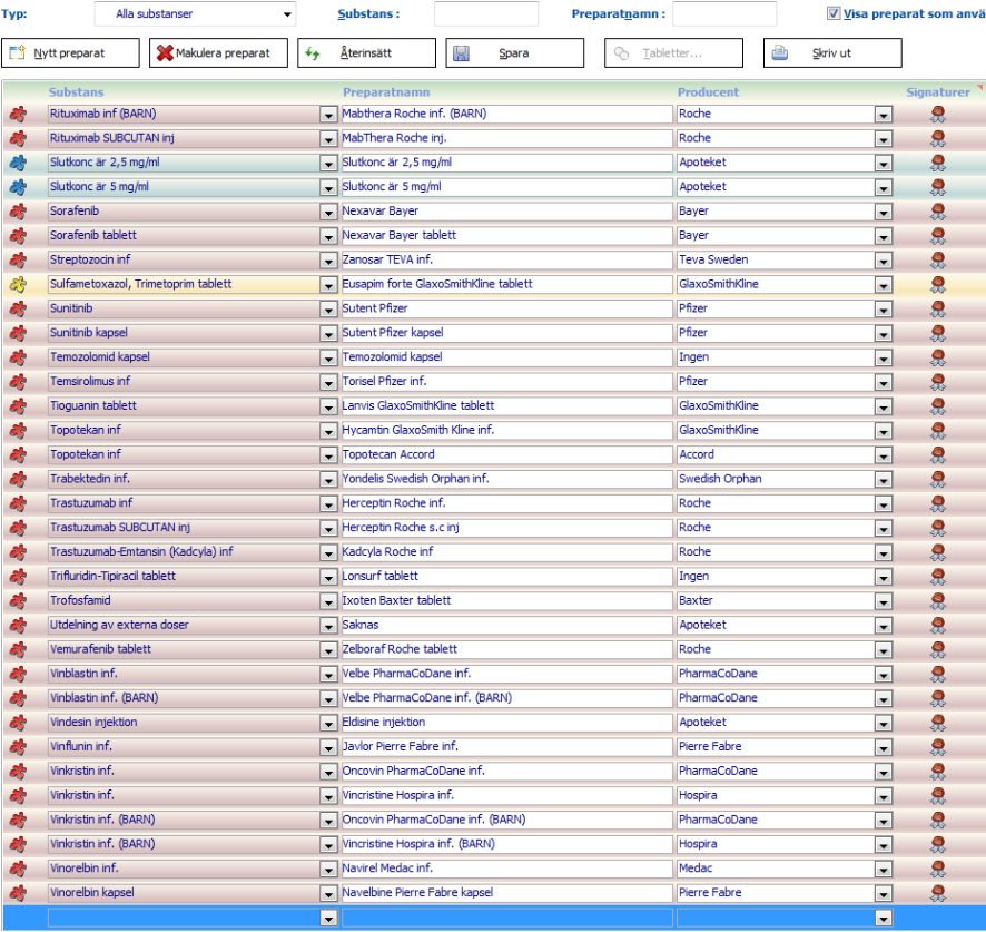 2. Hitta aktuellt läkemedel i nya radens ruta kolumn Preparatnamn och substanser.