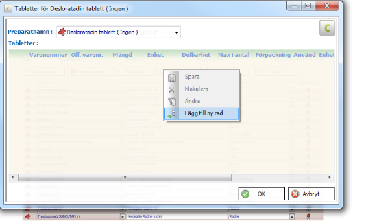 12. Välj preparatnamn, högerklicka i det tomma fältet, välj Lägg till ny rad. Obs! Lägg till en ny rad för varje tablettstyrka som finns.