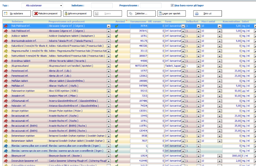 När man valt preparatnamn så anges substansnamn automatiskt.