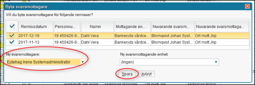 - Markera de remisser där du ska byta svarsmottagare
