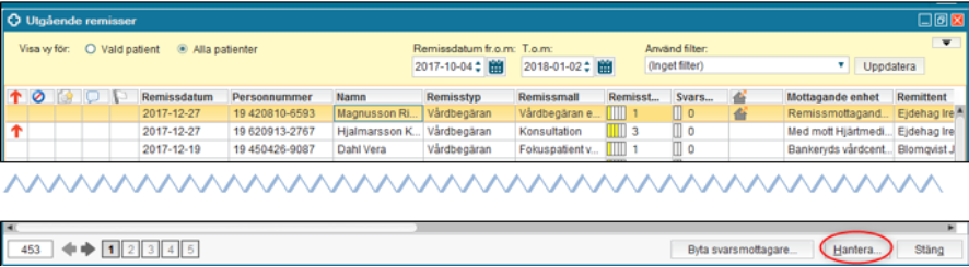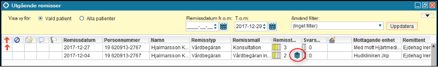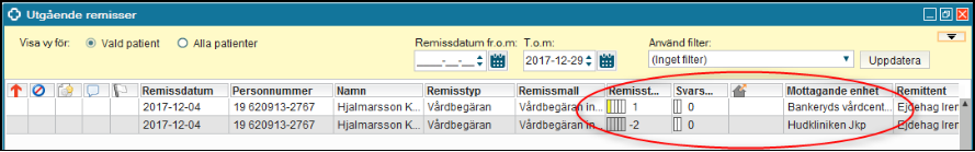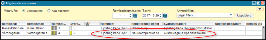 Alla remisser som skickats från en enhet presenteras i Utgående remisser.