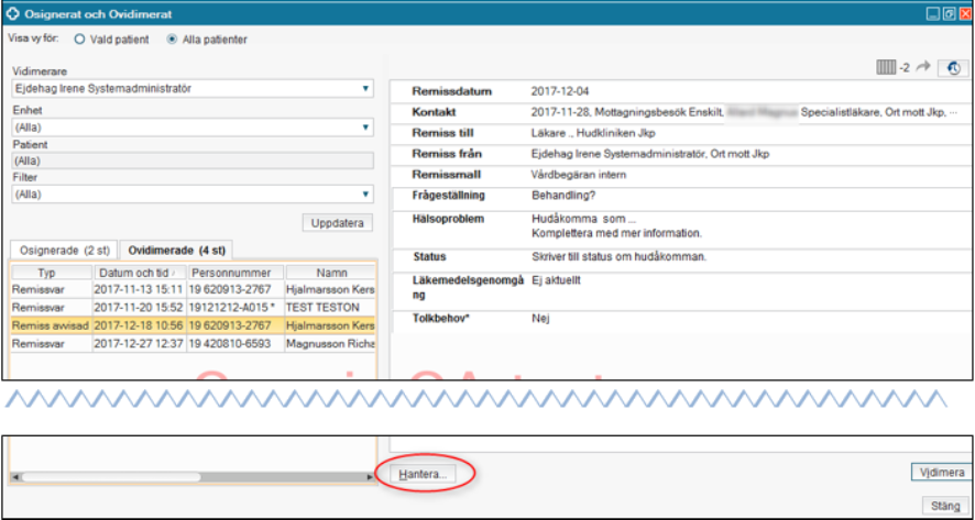 Vy för att hantera remiss