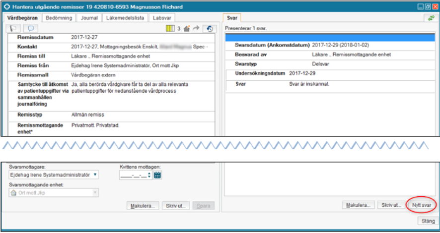 Observera att det är skillnad på Remittent och Svarsmottagare. Den som skrev remissen kan ha registrerat en viss Remittent och någon annan som Svarsmottagare.