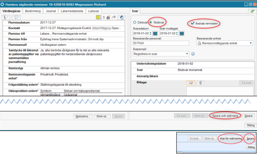 - Spara och vidimera – remissen får status -2 och remissen blir avvisad.