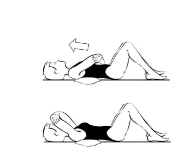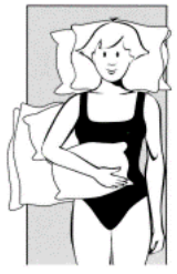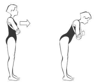 1. Stöd den aktuella sidans armbåge underifrån med den friska sidans hand. Fäll överkroppen framåt och ta på det viset ut rörligheten framåt-uppåt i axeln. Håll kvar i upp till 5-10 sekunder.