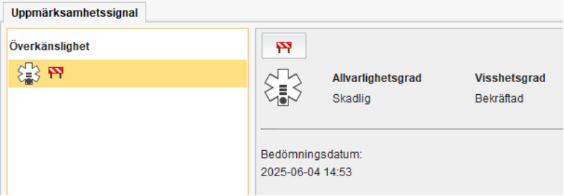 kan spärras. Om en registrering är spärrad visas endast typ, datum, allvarlighets- och visshetsgrad.