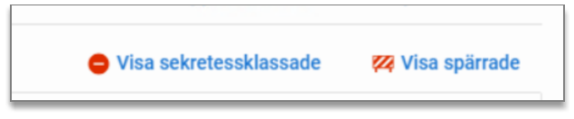 Spärrade respektive sekretessklassade vårdkontakter kan öppnas via alternativen Visa sekretessklassade eller Visa spärrade.