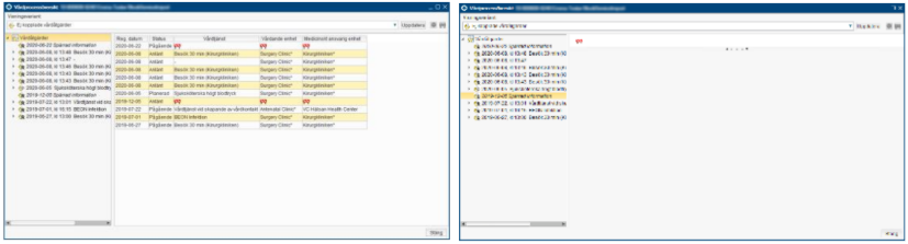 Historiklogg-poster där aktiviteten är i status Planerad spärras baserat på den beställande enheten. Uppdateringar av aktiviteter i övriga statusar spärras baserat på utförande enhet.