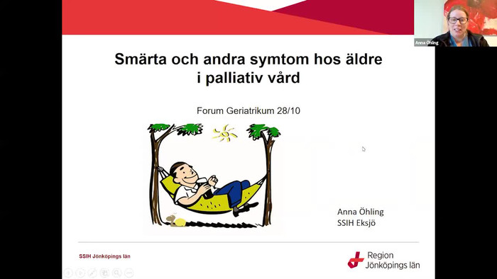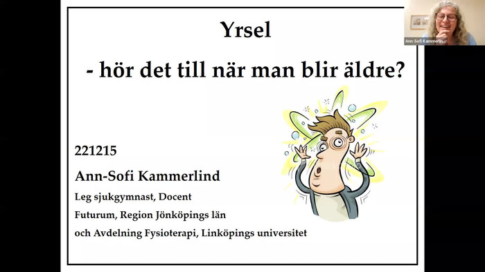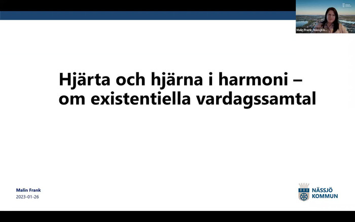 ”Samtalen inspirerar till en hoppfullhet om att kunna börja leva igen.” ”Jag vill aldrig att dem här samtalen tar slut, det ger mig energi resten av dagarna.” ”Tack vare er så känner jag mig mindre ensam.” Det säger några deltagare från äldreboenden i Nässjö och Jönköpings kommun. Där har de deltagit i grupper med existentiella vardagssamtal. I den här föreläsningen får du del av vad existentiella samtal är och hur man har arbetat med det i Nässjö och Jönköping.