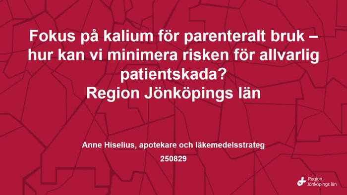 En digital föreläsning inom patientsäkerhetsområdet om koncentrerade elektrolytlösningar med fokus på kalium. Föreläsningen tar ca 22 minuter.